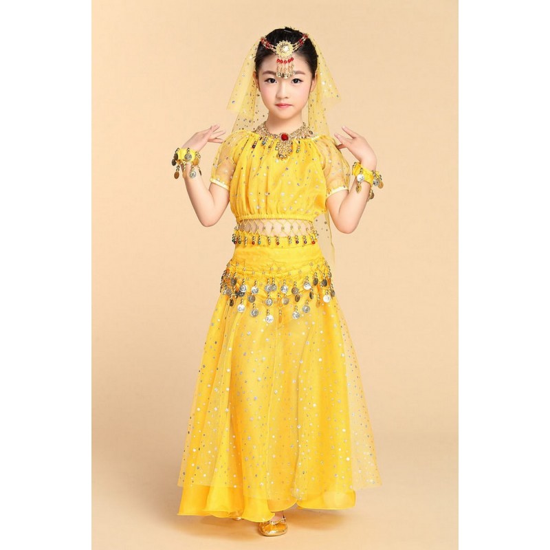 Costume de danse orientale enfant jupe brillante et brassière jaune