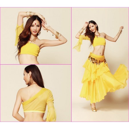 Costume de danse orientale à volants jaune