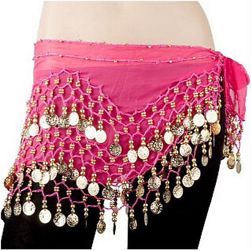 Cintura di danza del ventre fuscia con sequin dorati