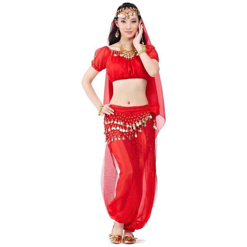 Abbigliamento da ballo orientale 2 pezzi di reggiseno corto e il suo sarouel decorato con paillettes