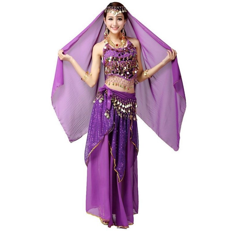 Vestito di danza del ventre poco costoso con i Sequins viola
