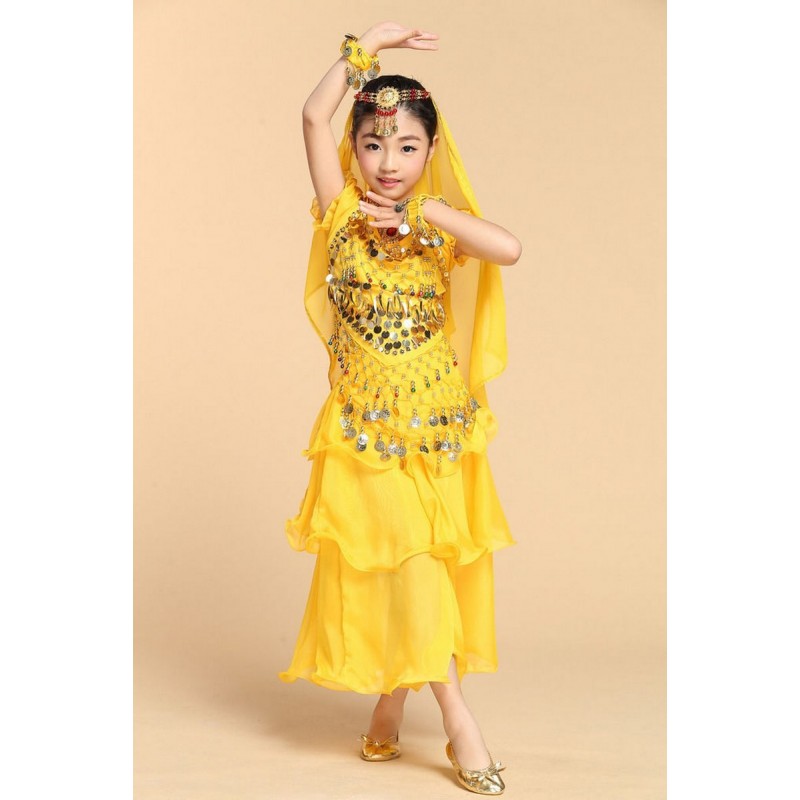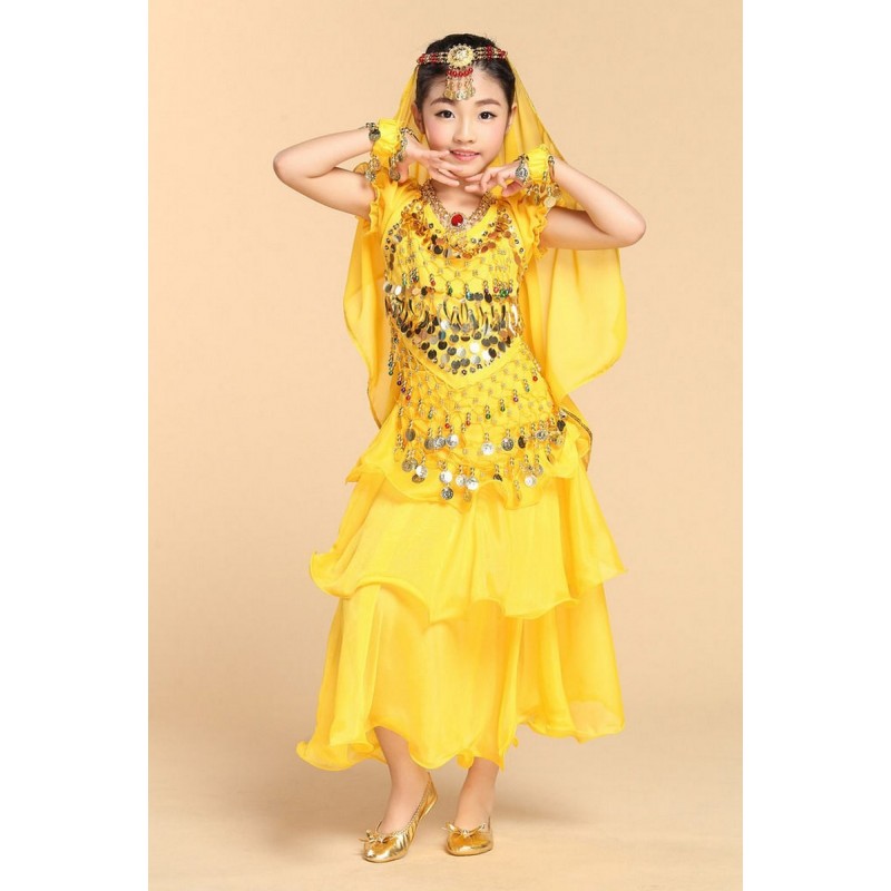 Costume di danza del ventre bambina fucsia gonna e top giallo