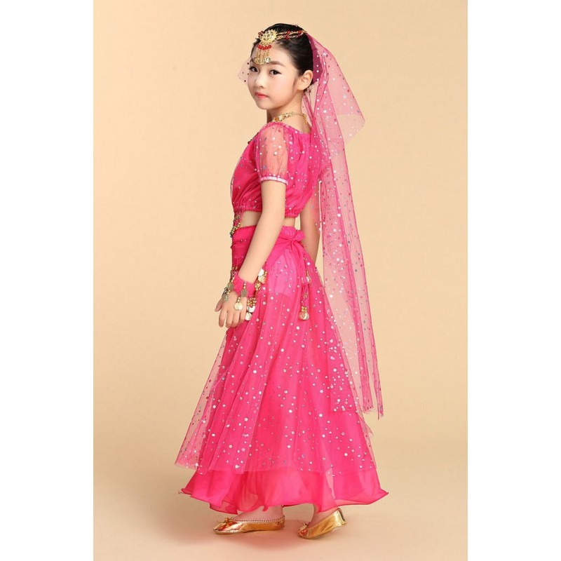 Costume di danza del ventre bambina con gonna luminosa e top fucsia