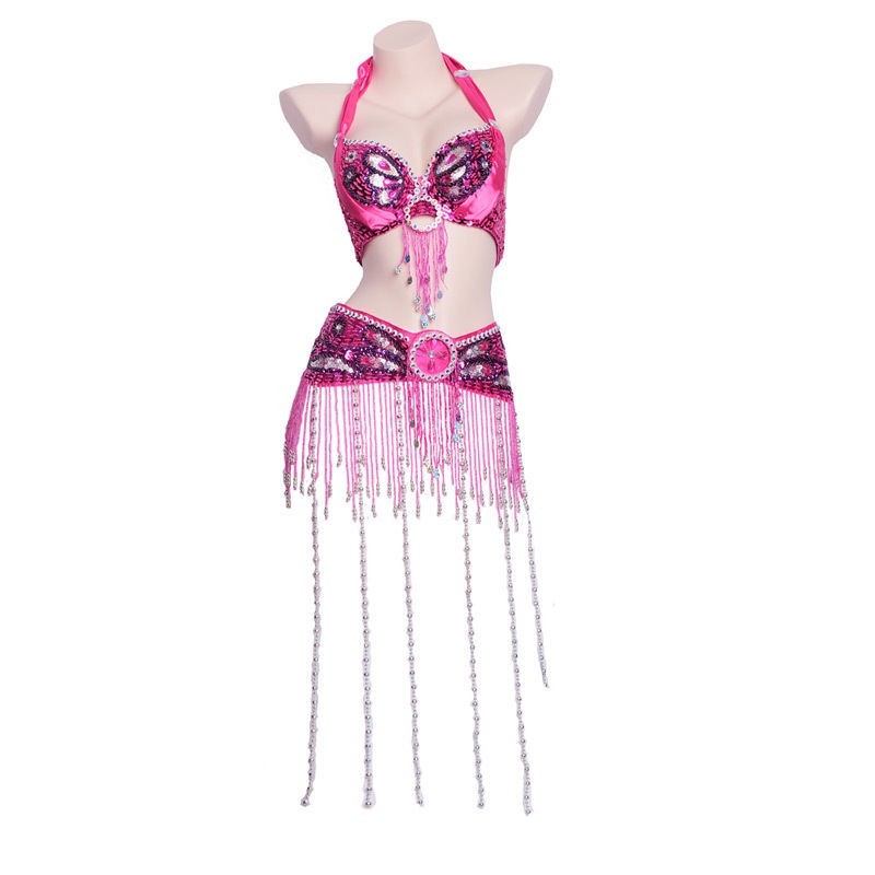 Set di danza del ventre reggiseno + cintura fucsia
